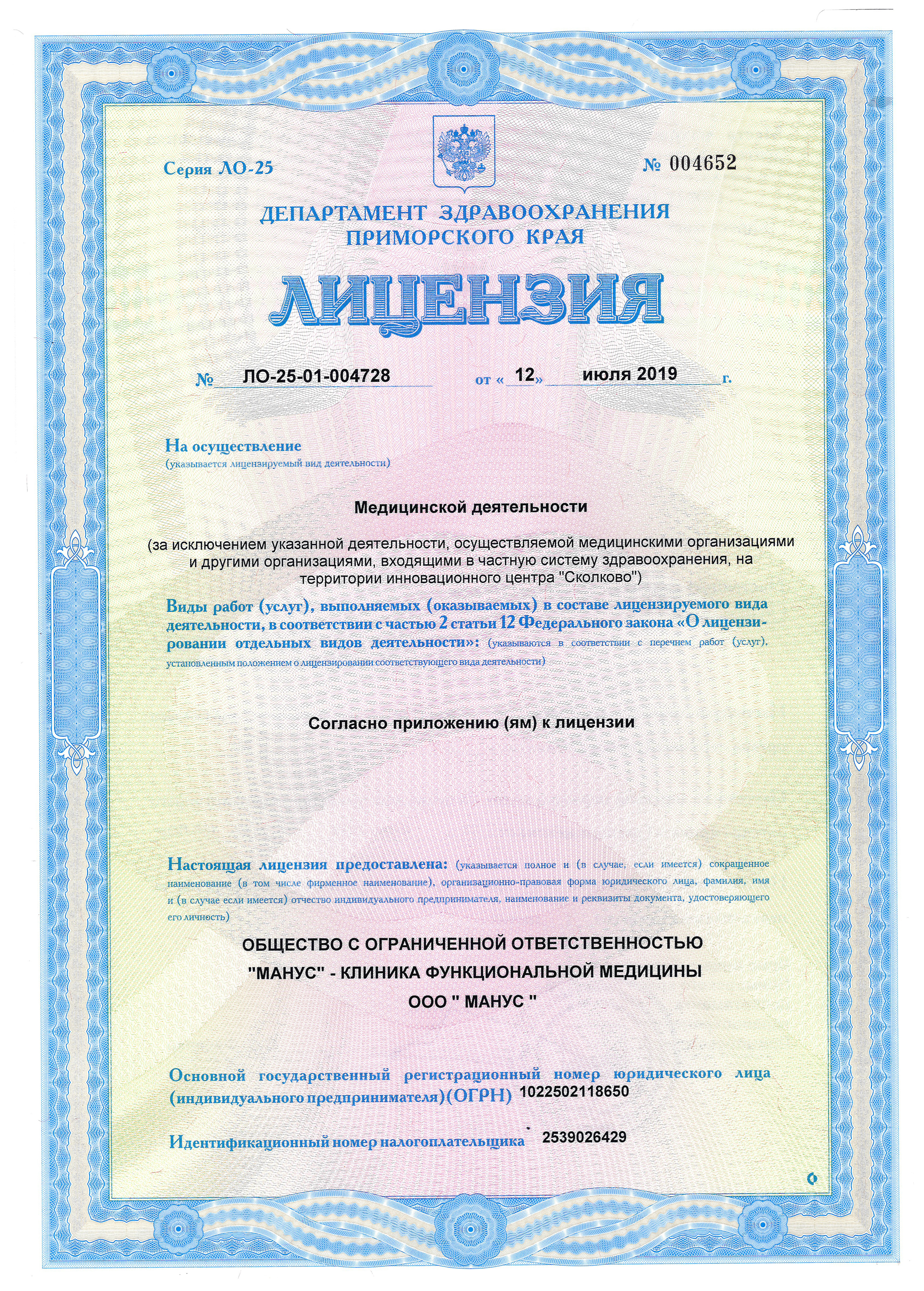 Лицензии на осуществление медицинской деятельности